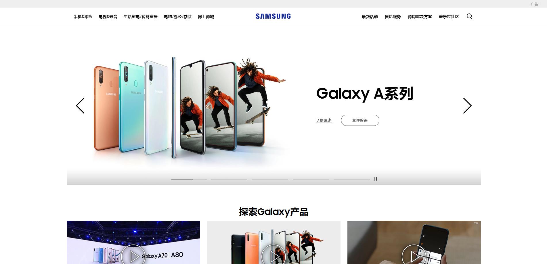 2、三星中國官網(wǎng)著手于品牌服務(wù)及優(yōu)勢產(chǎn)品進(jìn)行架構(gòu)的設(shè)計(jì),而非舍本逐末的對(duì)公司介紹或者公司動(dòng)態(tài)、實(shí)用案列等進(jìn)行表達(dá),核心點(diǎn)明確,設(shè)計(jì)傳達(dá)重心明確,在輔以精致的布局,企業(yè)的品牌形象就從官網(wǎng)傳達(dá)出來。